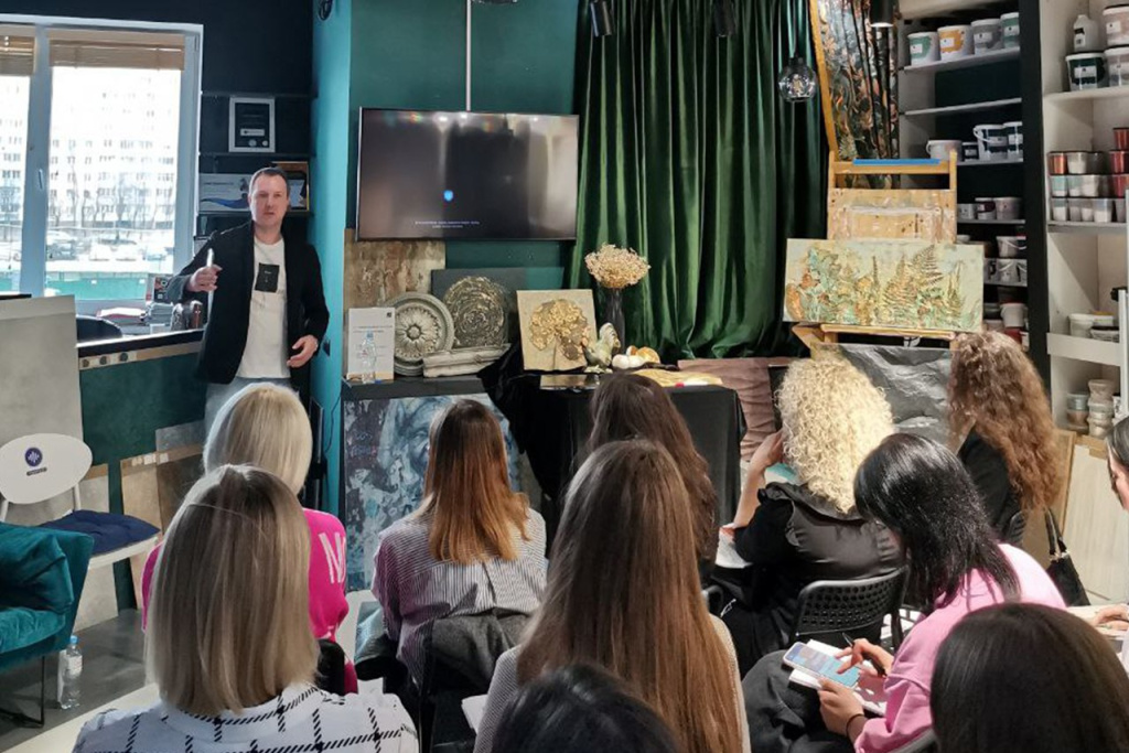Сошлись во мнении, что начинающим дизайнерам важно понимать поэтапность работ, знакомиться не только с классическими базовыми нанесениями, но и с авторскими, расширять свои познания в техниках нанесения, чтобы декоративные материалы стали ближе и понятнее.